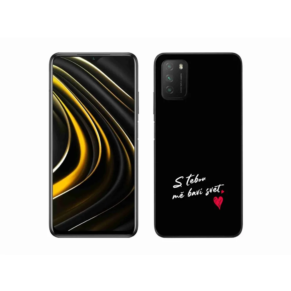 Rugalmas zselés tok mmCase kép Xiaomi Poco M3 - szöveg szerelemben 1 fekete háttérrel