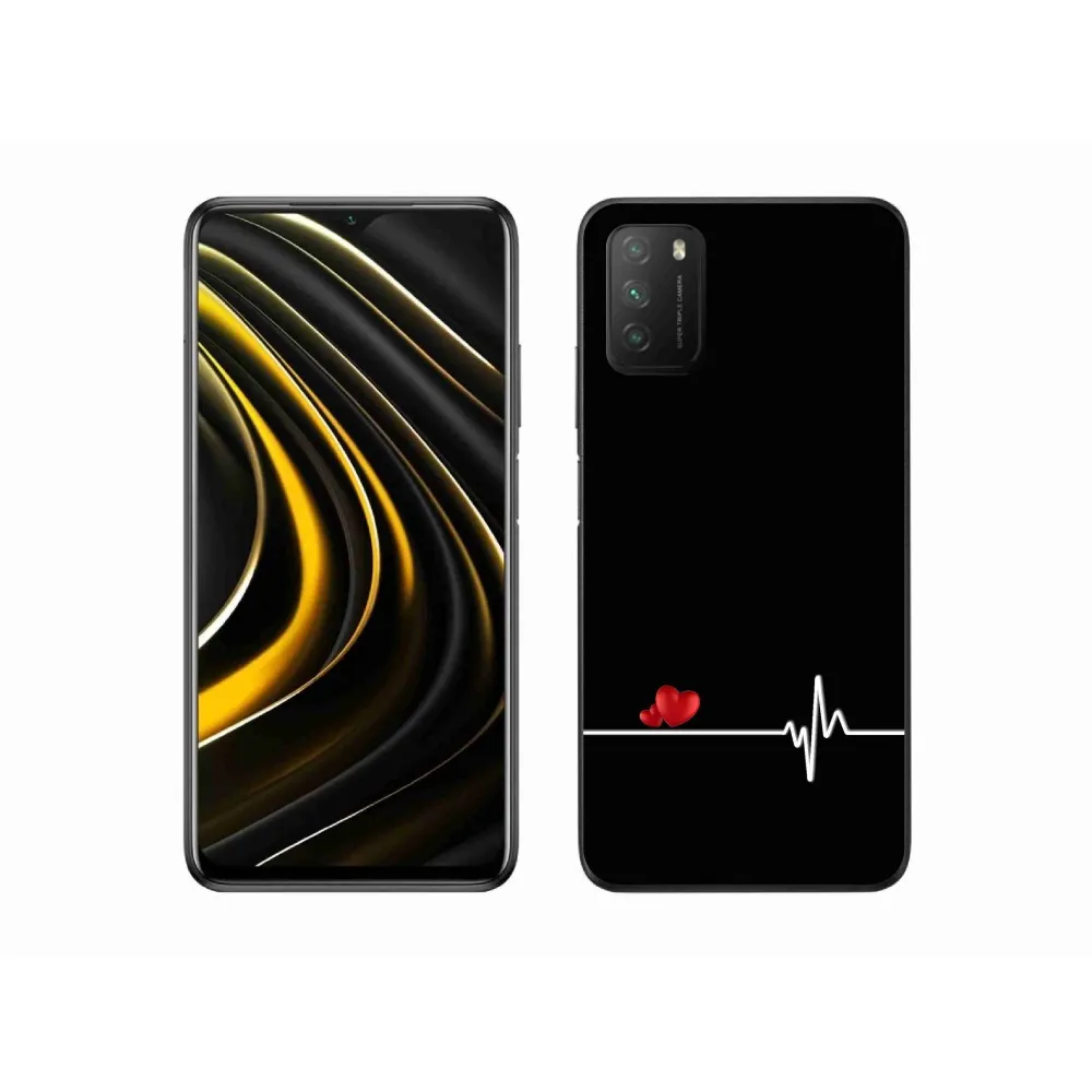 Rugalmas gél tok mmCase kép Xiaomi Poco M3 - szív és szívverés fekete háttérrel