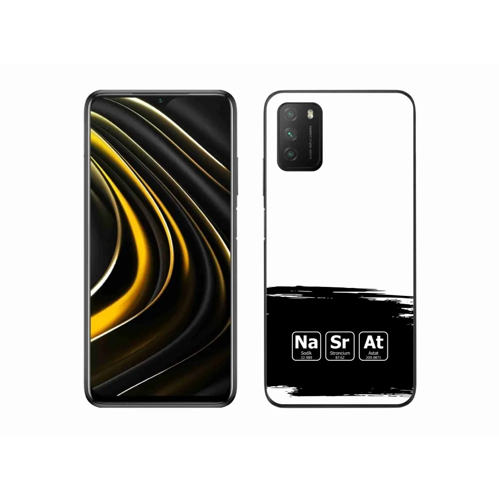 Rugalmas gél tok mmCase kép Xiaomi Poco M3 - kémiai elemek fekete és fehér háttérrel