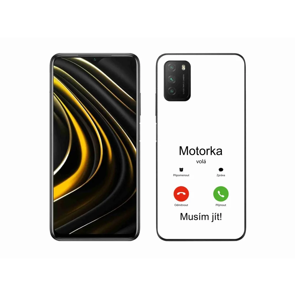 Rugalmas zselés tok mmCase kép Xiaomi Poco M3 - motoros hívó fehér háttérrel