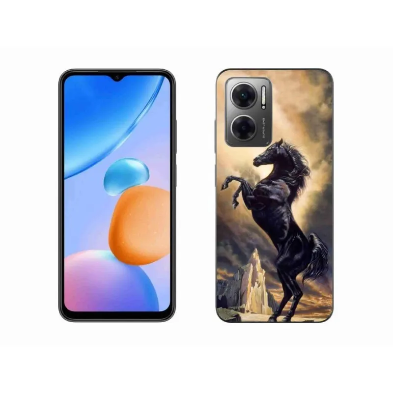 Gél borító mmCase a Xiaomi Redmi 10 5G-hez - fekete rajzfilm ló