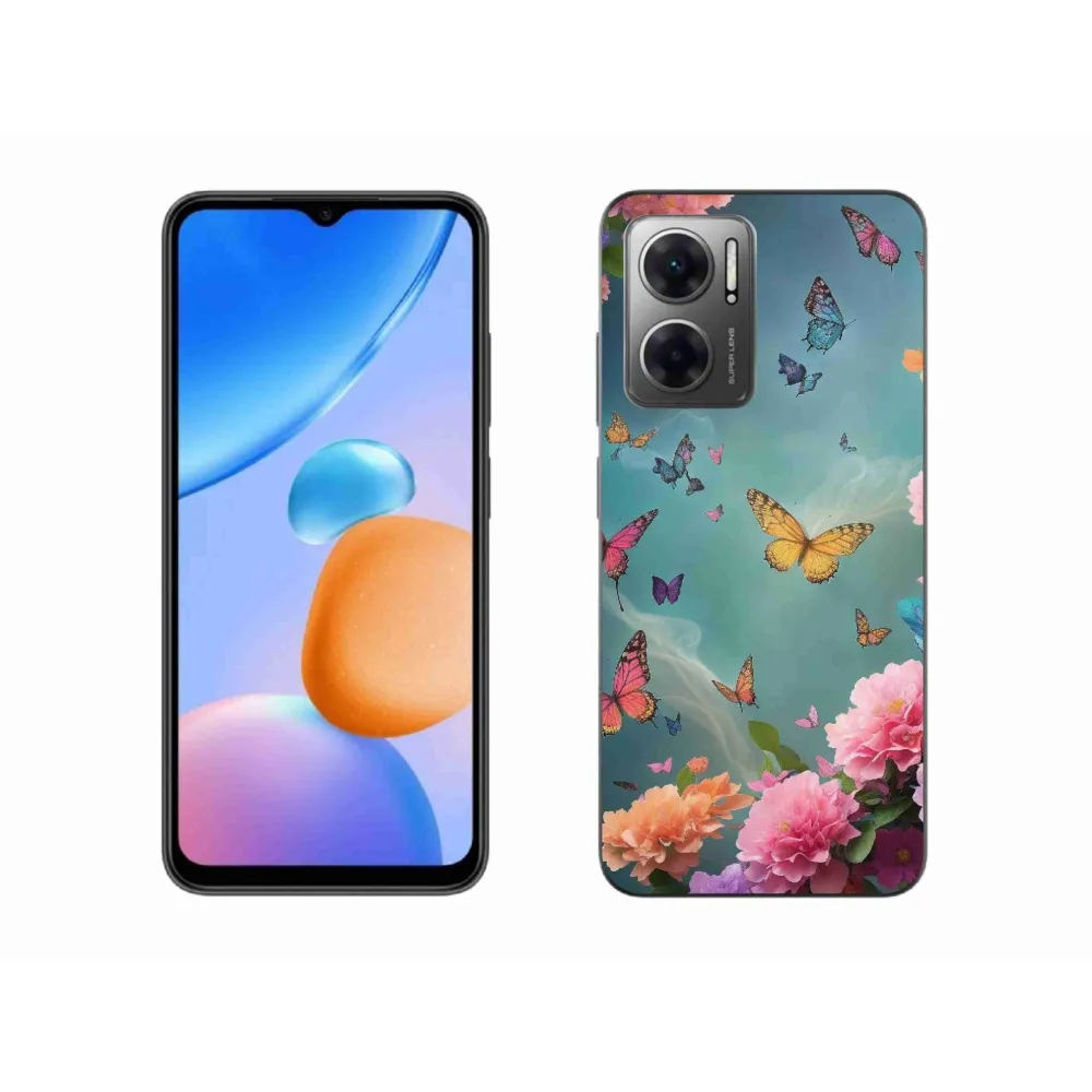 Gél borító mmCase a Xiaomi Redmi 10 5G számára - színes virágok és pillangók