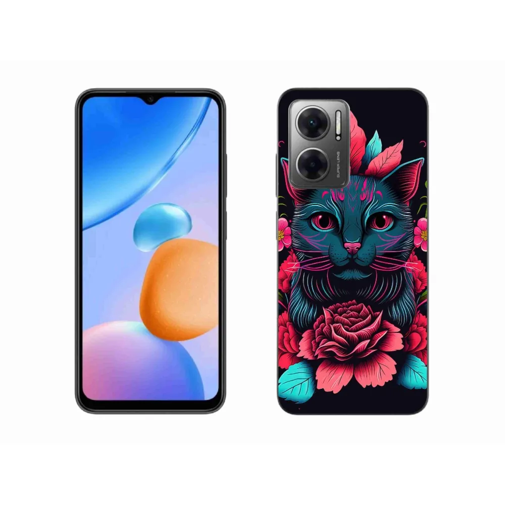 Gél borító mmCase a Xiaomi Redmi 10 5G számára - virágok és macska