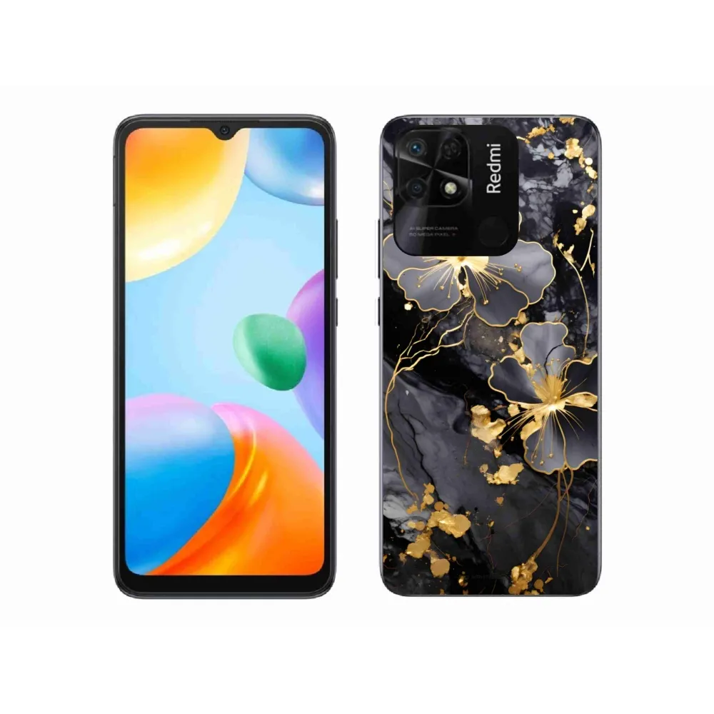 Rugalmas zselés tok mmCase kép Xiaomi Redmi 10C - arany virágokkal