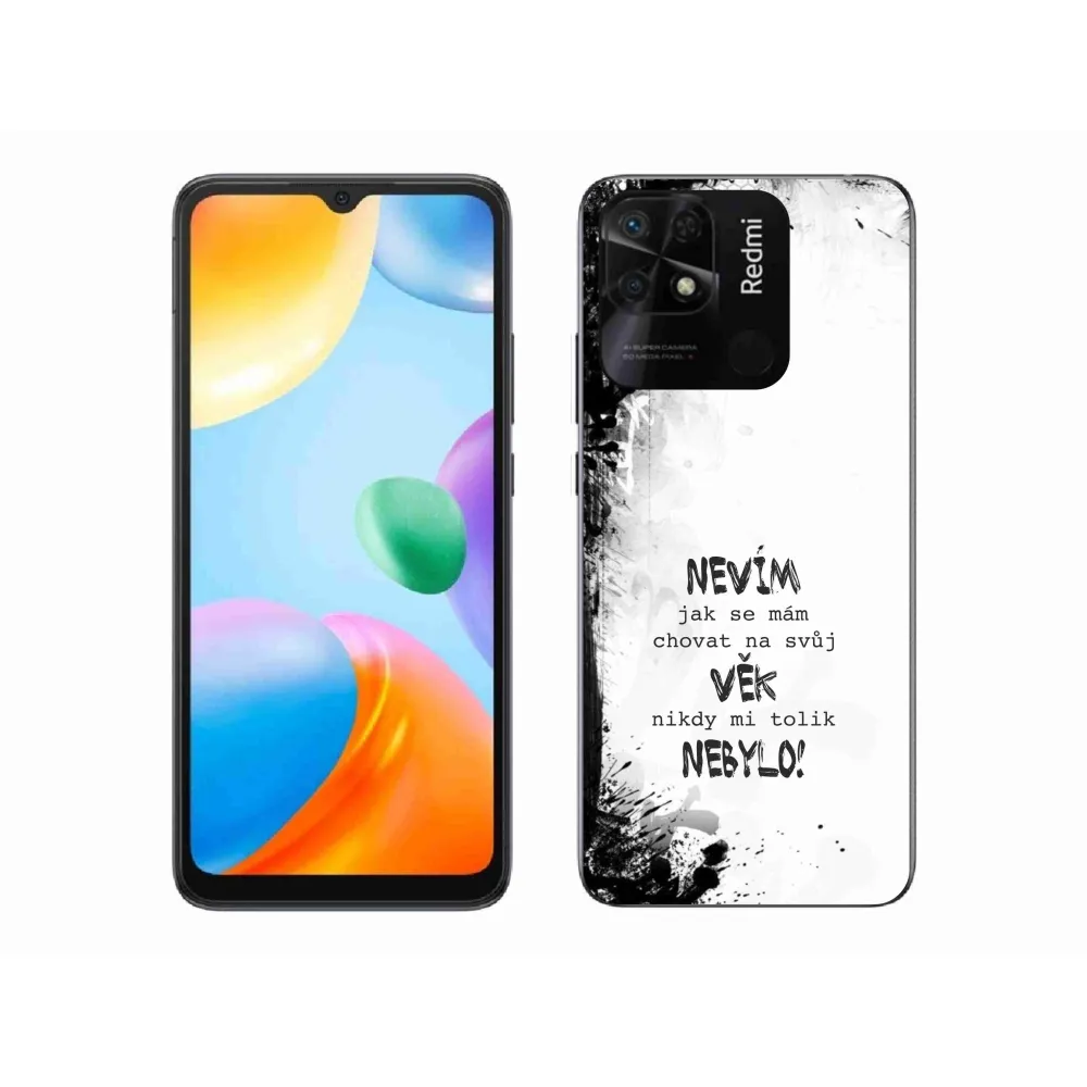 Rugalmas gél tok mmCase kép Xiaomi Redmi 10C - vicces szöveg 14 fehér háttérrel