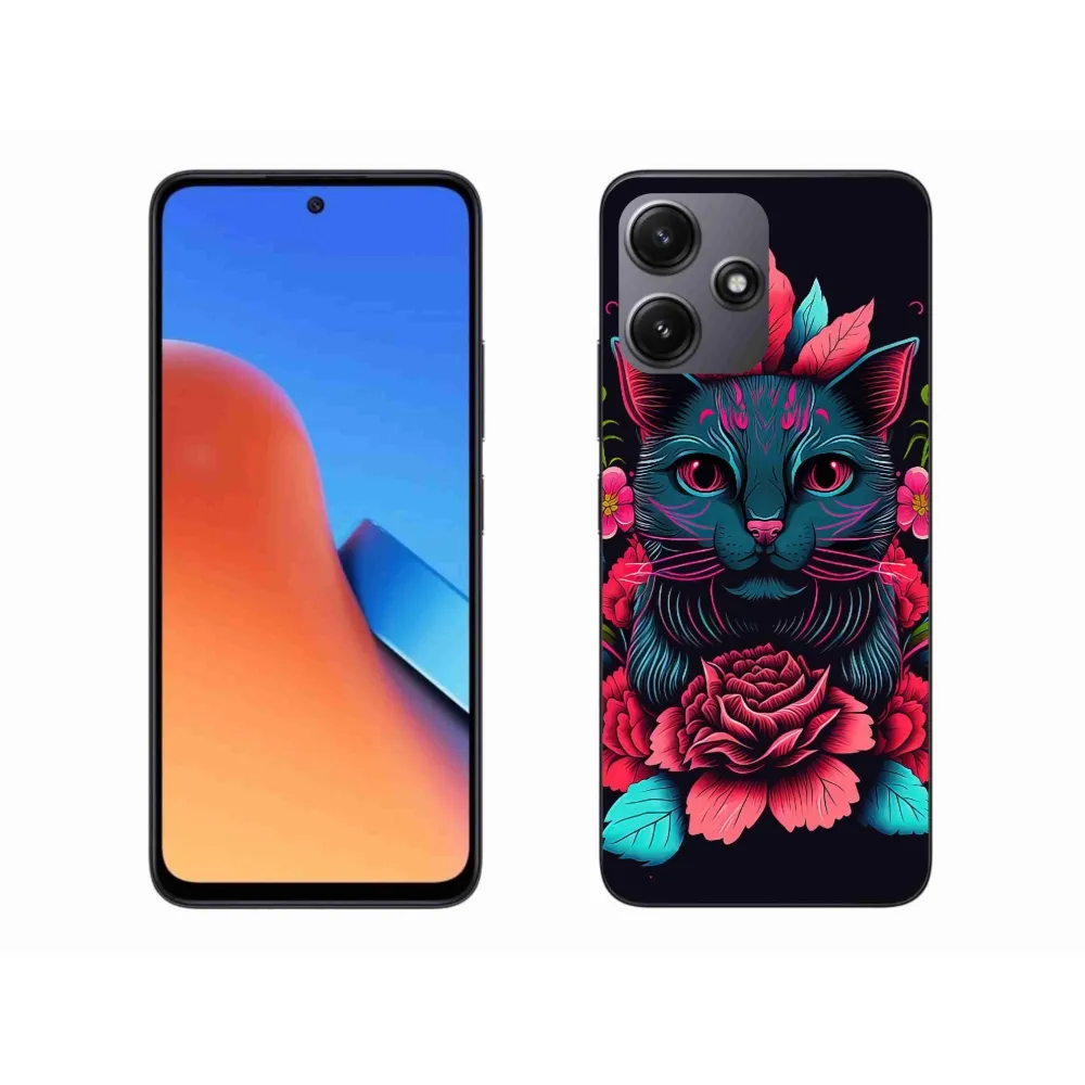 Rugalmas zselés tok mmCase kép Xiaomi Redmi 12 5G - virágok és macska