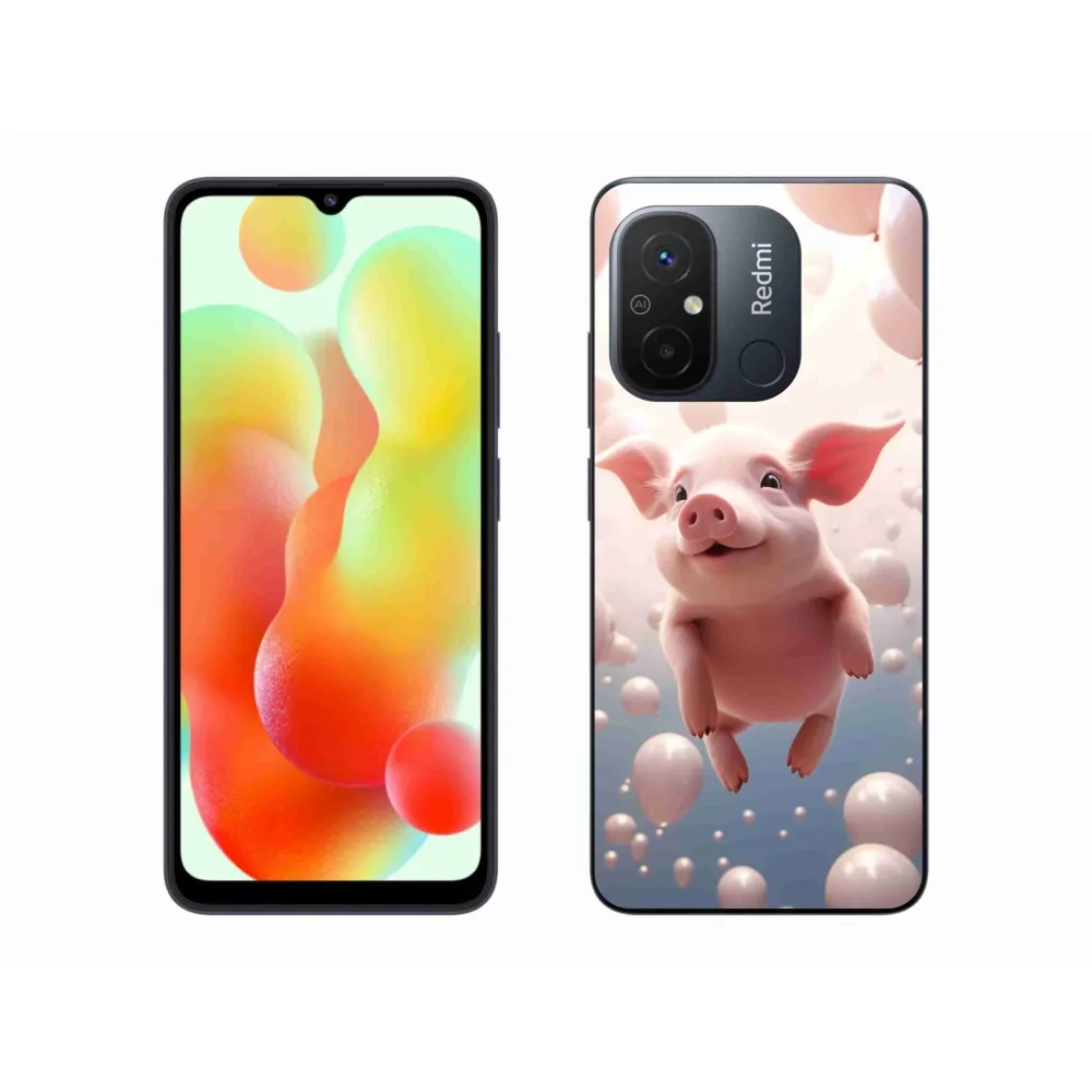 Rugalmas gél tok mmCase kép Xiaomi Redmi 12C - malacka lufival - kép Xiaomi Redmi 12C