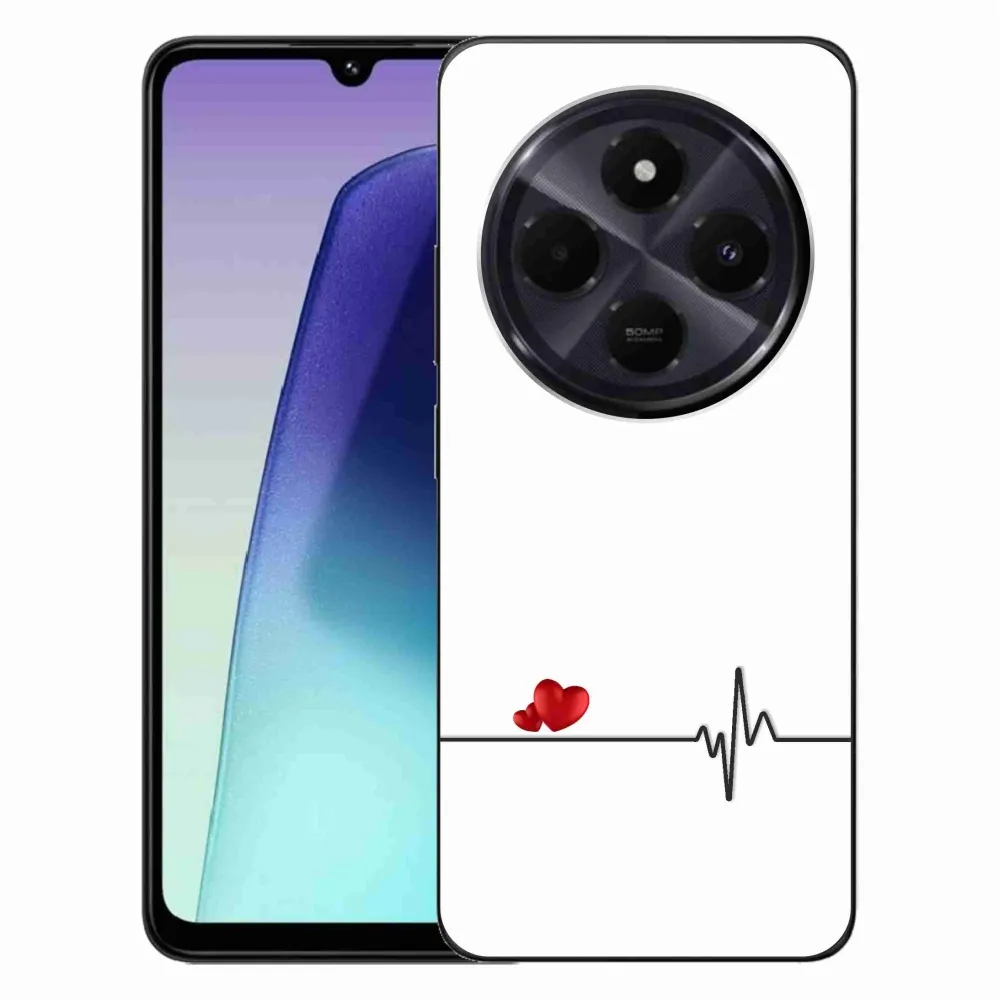 Rugalmas zselés borító mmCase a Xiaomi Redmi 14C/Poco C75 képével - szív és szívverés fehér háttérrel