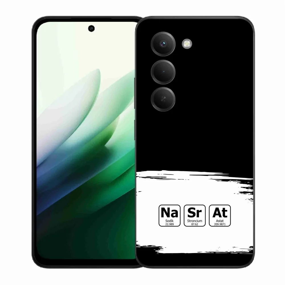 Rugalmas gél tok mmCase kép Xiaomi Redmi 15 5G - kémiai elemek fehér és fekete háttérrel