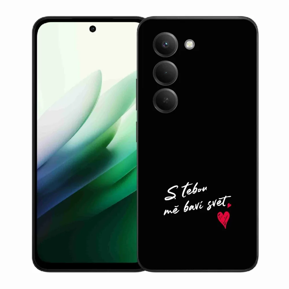 Rugalmas gél tok mmCase kép Xiaomi Redmi 15 5G - szöveg szerelemben 1 fekete háttérrel