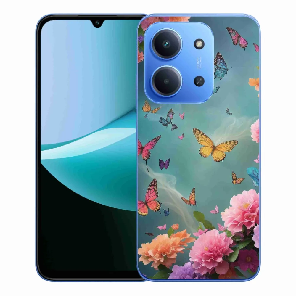 Rugalmas zselés tok mmCase kép Xiaomi Redmi 15C 4G/5G (173mm) - színes virágok és pillangók