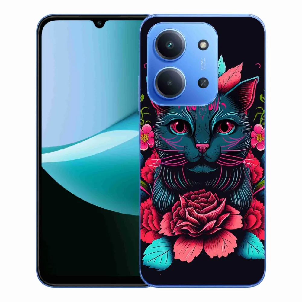 Rugalmas zselés tok mmCase kép Xiaomi Redmi 15C 4G/5G (173mm) - virágok és macska
