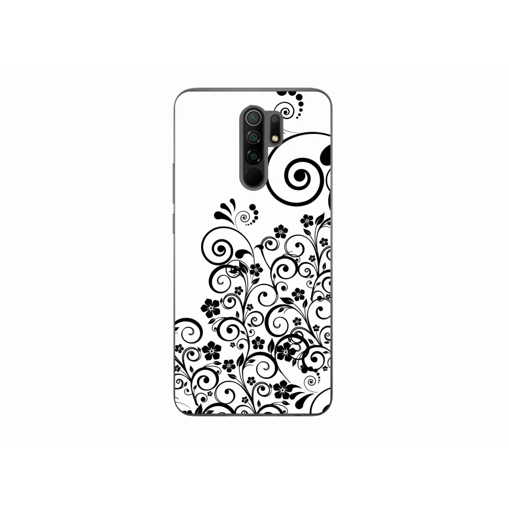 Gél borító mmCase a Xiaomi Redmi 9-hez - fekete és fehér virágmintás