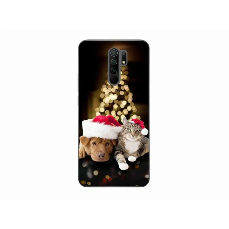 Gél borító mmCase a Xiaomi Redmi 9-hez - Karácsonyi kutya és macska