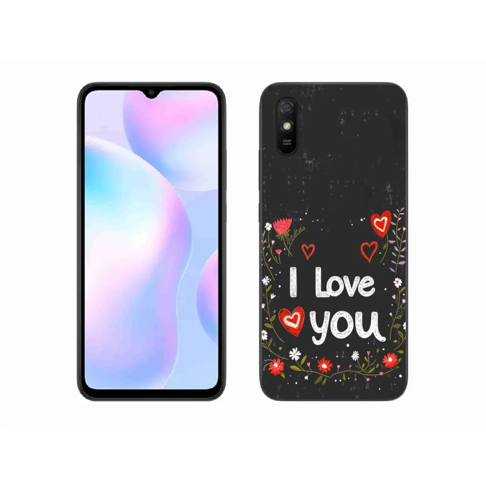 Rugalmas zselés tok mmCase kép Xiaomi Redmi 9A - I love you fekete háttérrel