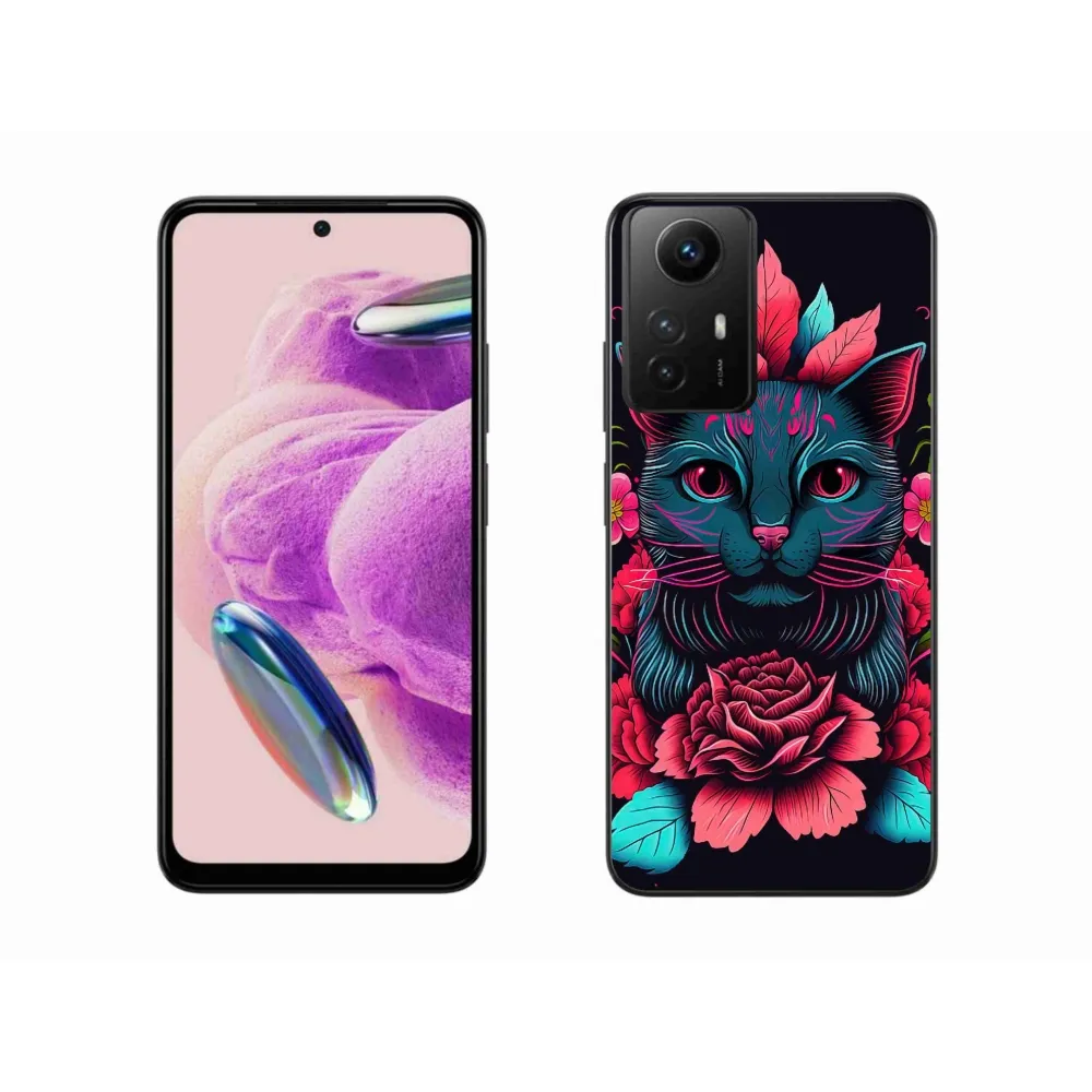 Rugalmas zselés tok mmCase kép Xiaomi Redmi Note 12S - virágok és macska