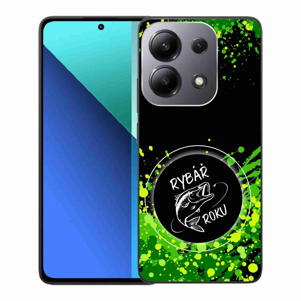 Rugalmas zselés tok mmCase kép Xiaomi Redmi Note 13 - halász az év fekete háttérrel