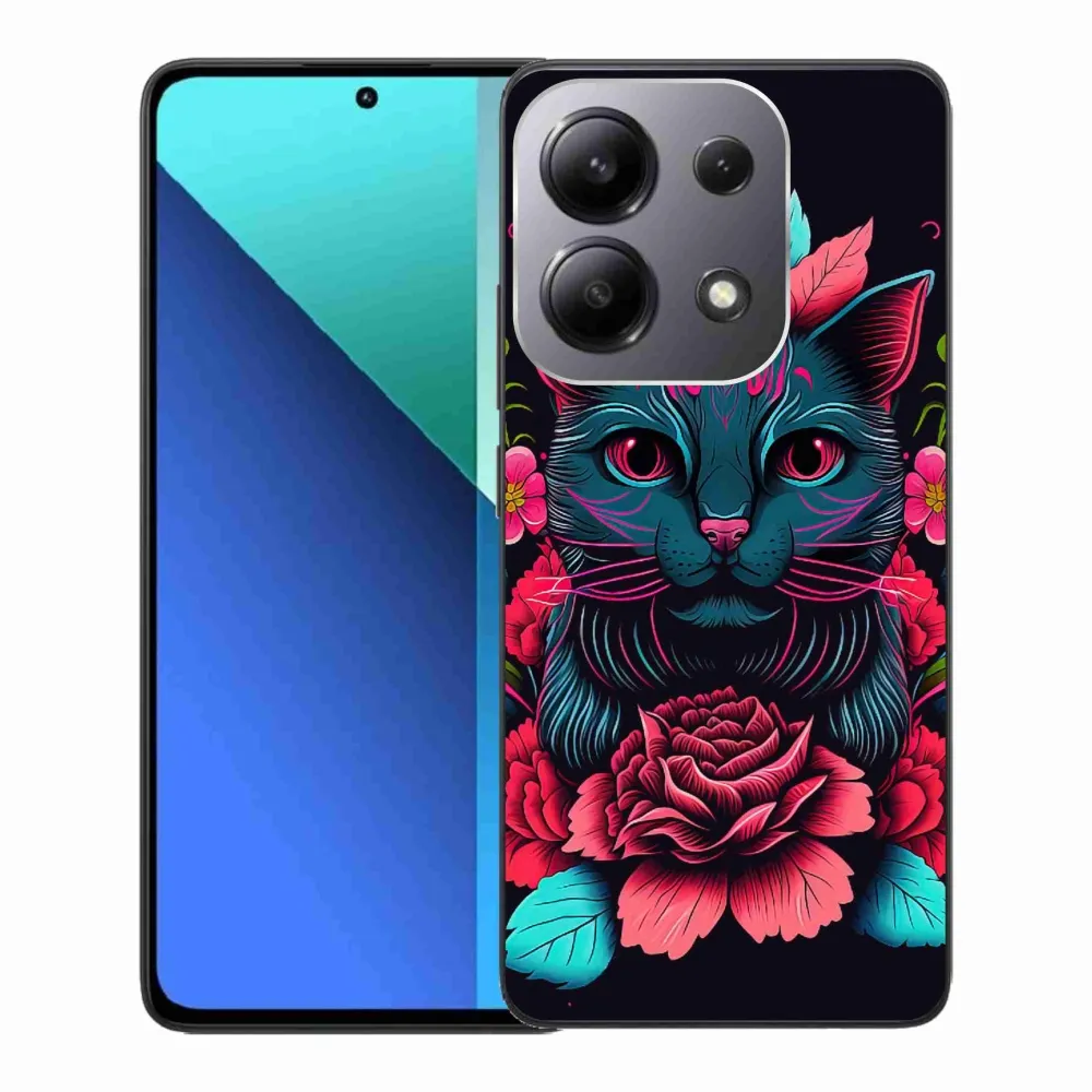 Rugalmas zselés tok mmCase kép Xiaomi Redmi Note 13 - virágok és macska