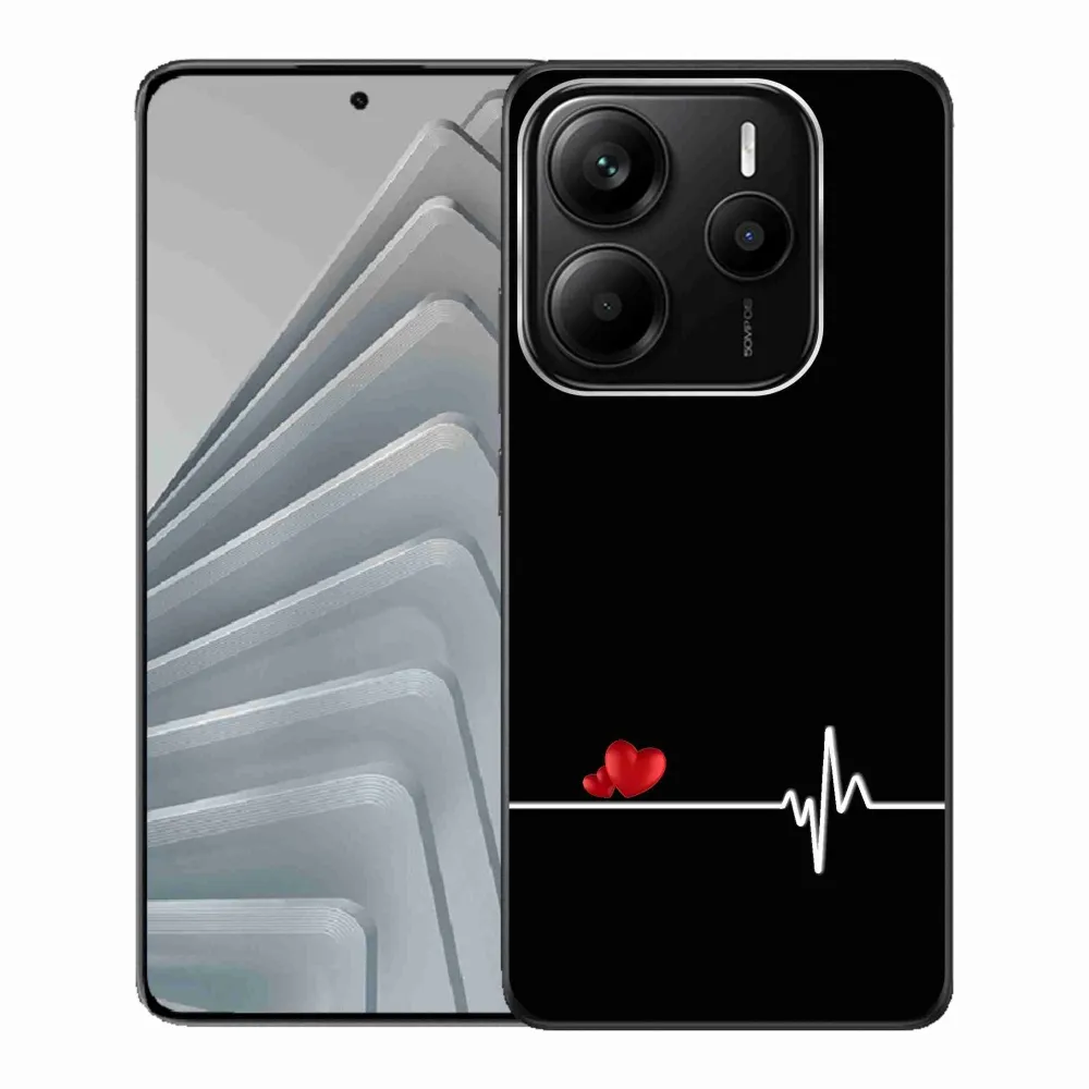 Gél borító mmCase a Xiaomi Redmi Note 14 5G-hez - szív és szívverés fekete háttérrel