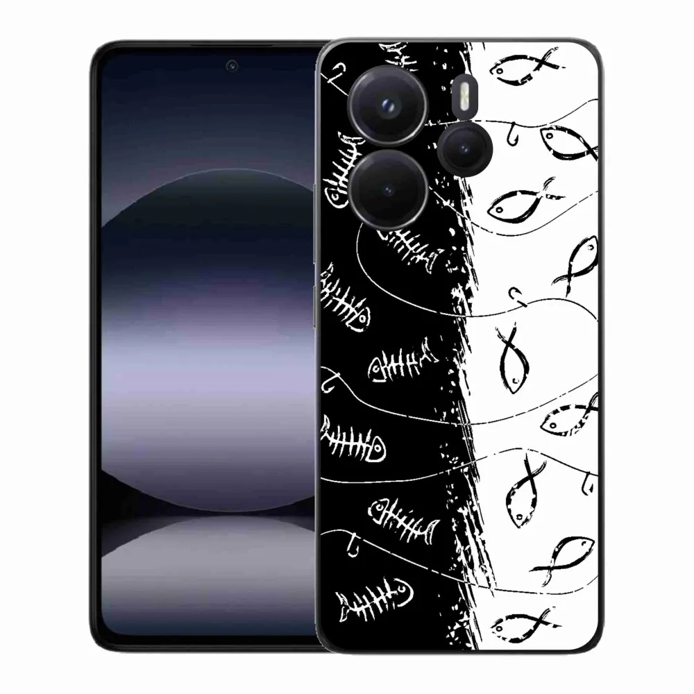 Rugalmas zselés tok mmCase kép Xiaomi Redmi Note 14 - csontvázak és halak