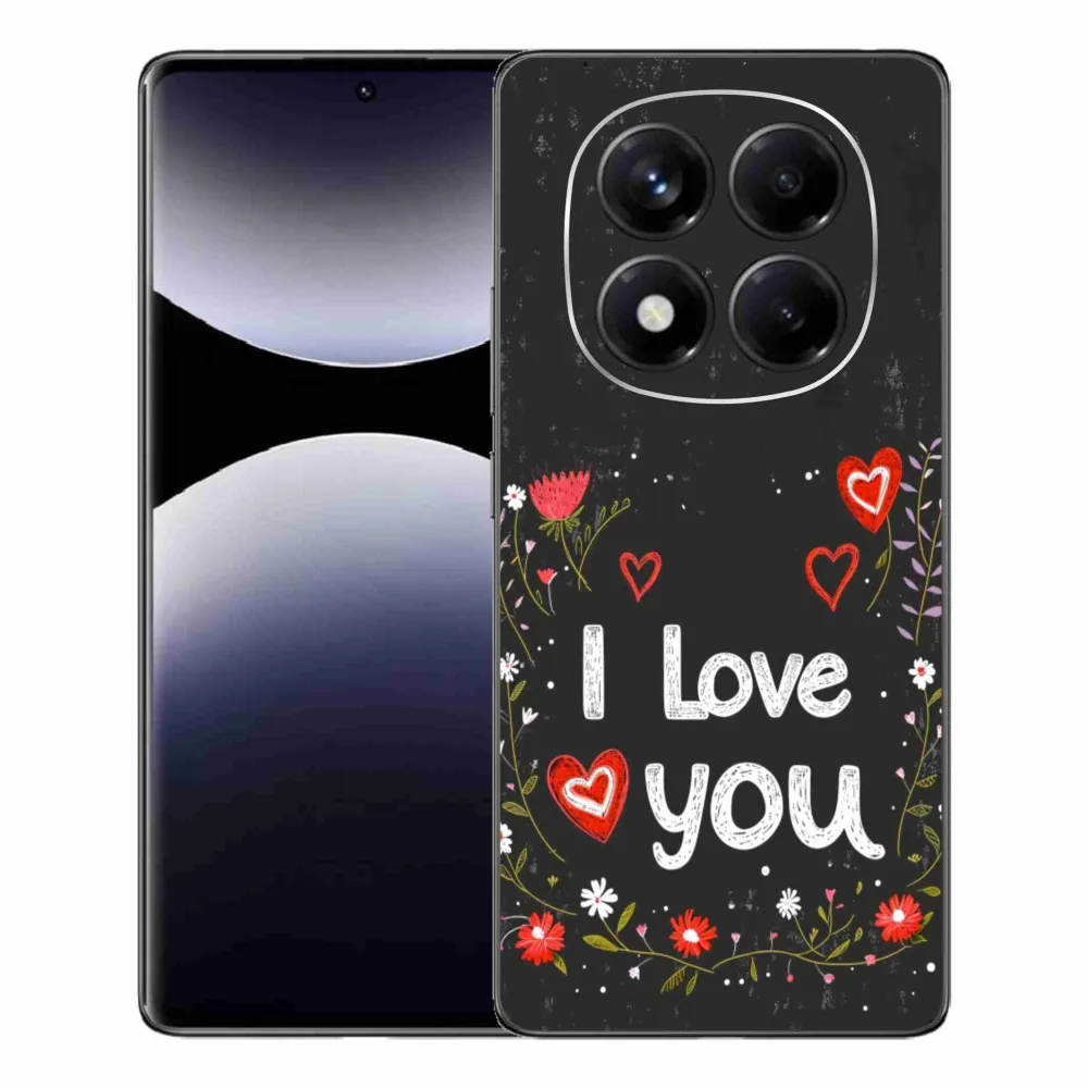 Rugalmas zselés tok mmCase kép Xiaomi Redmi Note 14 Pro - I love you fekete háttérrel