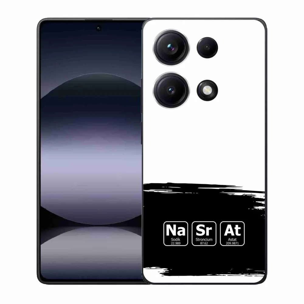 Rugalmas zselés tok mmCase kép Xiaomi Redmi Note 14S - kémiai elemek fekete és fehér háttérrel