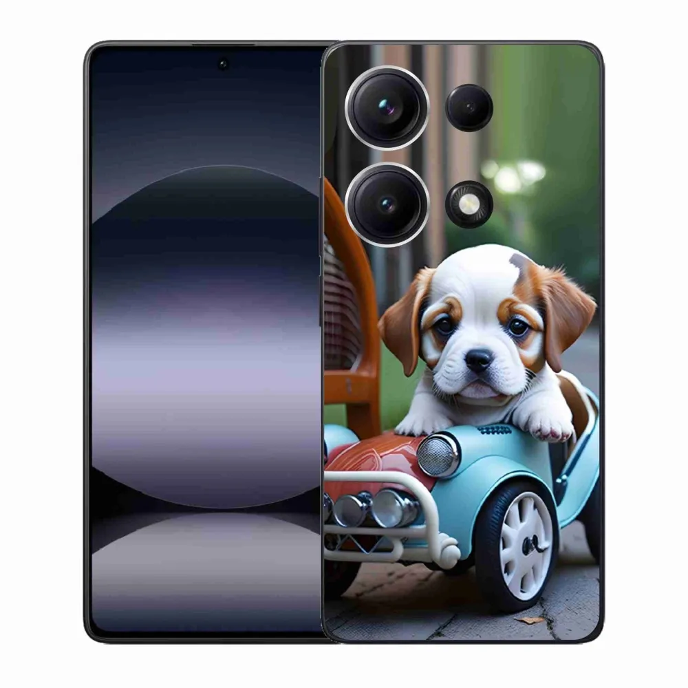 Rugalmas zselés tok mmCase kép Xiaomi Redmi Note 14S - kiskutya retro autóban