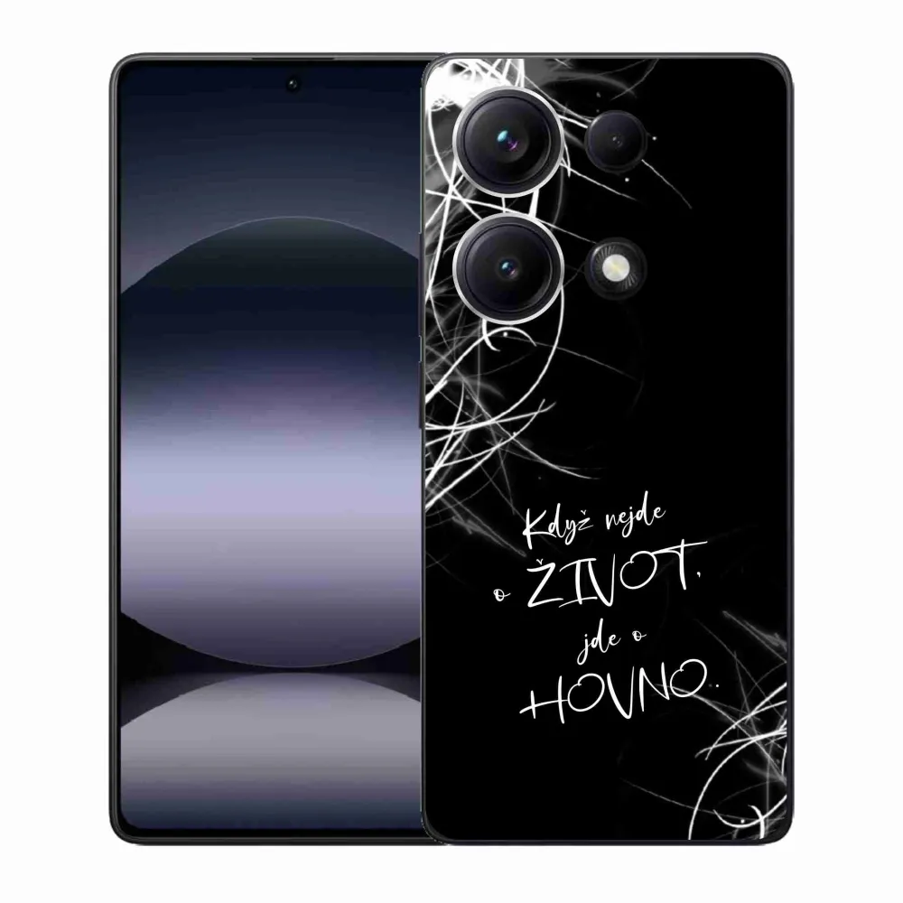 Rugalmas zselés tok mmCase kép Xiaomi Redmi Note 14S - vicces szöveg 16 fekete háttérrel