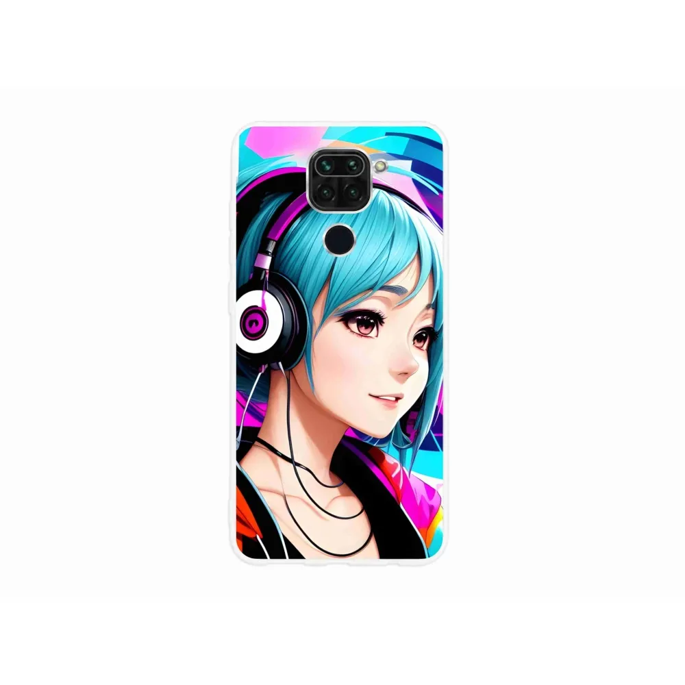 Gél borító mmCase a Xiaomi Redmi Note 9-hez - lány fejhallgatóval
