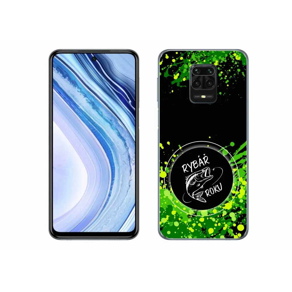 Rugalmas zselés tok mmCase kép Xiaomi Redmi Note 9S - halász az év fekete háttérrel