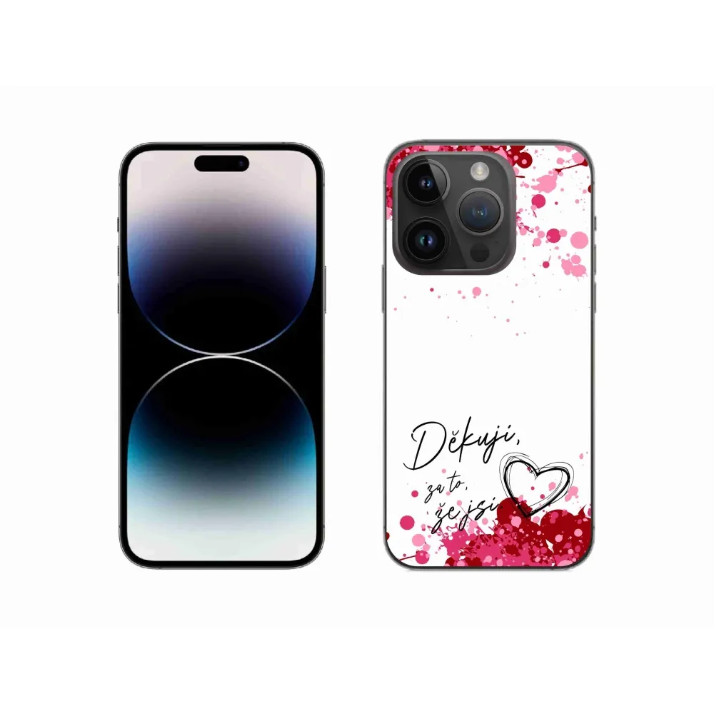Rugalmas zselés tok mmCase képpel iPhone 14 Pro 6.1 - szerelmes szöveg 2 fehér háttérrel
