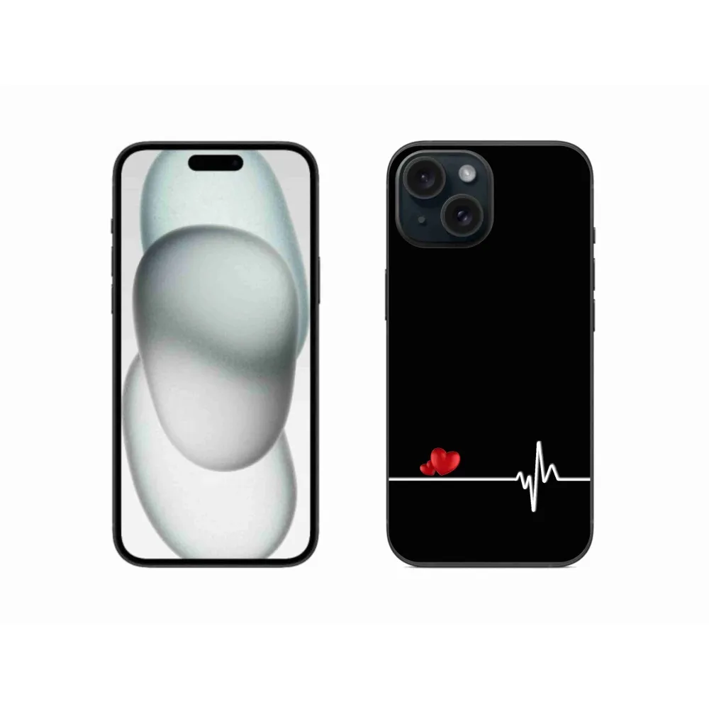 Rugalmas zselés tok mmCase képpel iPhone 15-hez - szív és szívverés fekete háttérrel