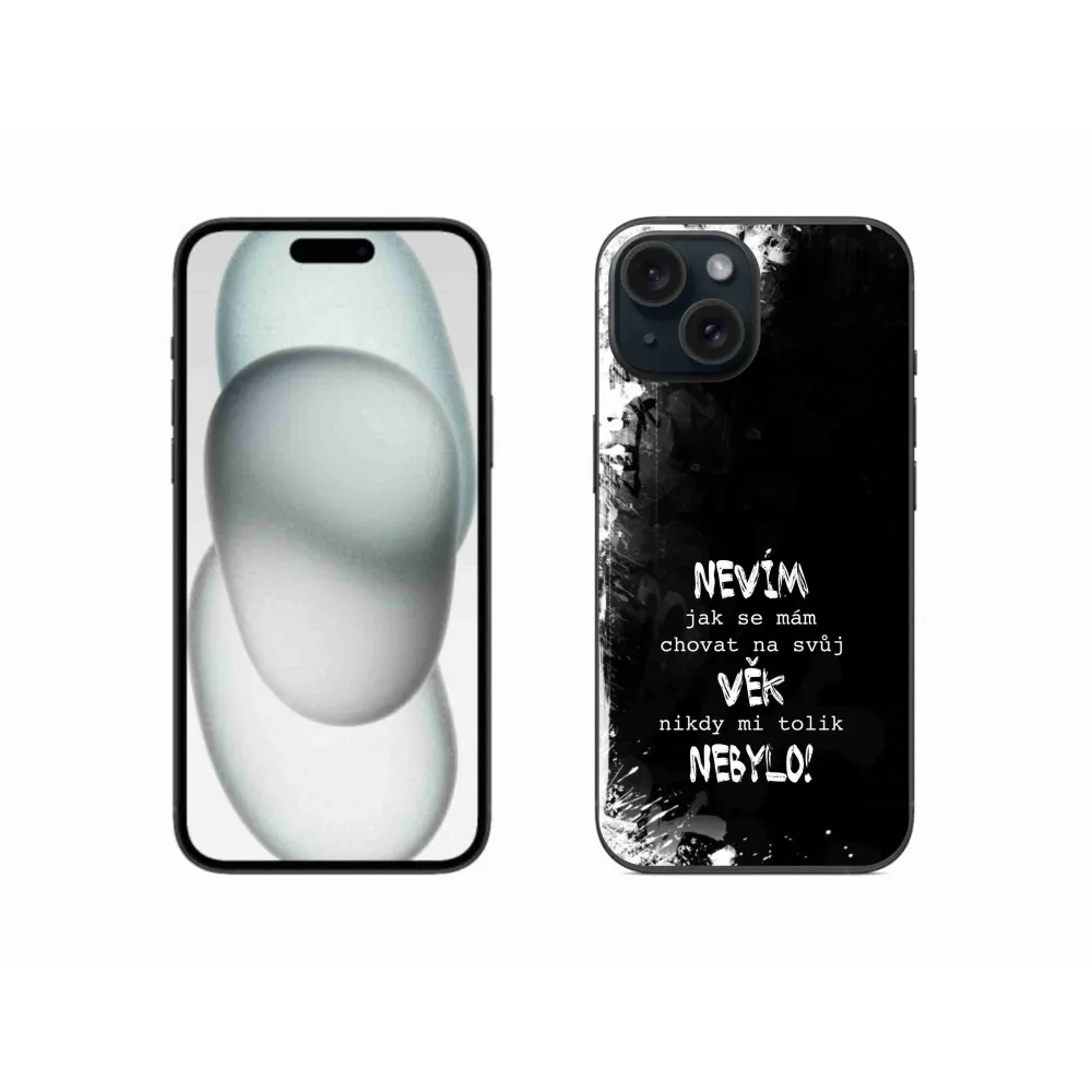 Rugalmas zselés tok mmCase képpel iPhone 15 - vicces szöveg 14 fekete háttérrel