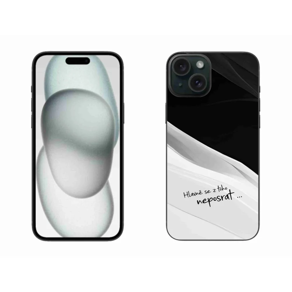 Gél borító mmCase iPhone 15 Plus készülékhez - vicces szöveg 13 fehér és fekete háttérrel