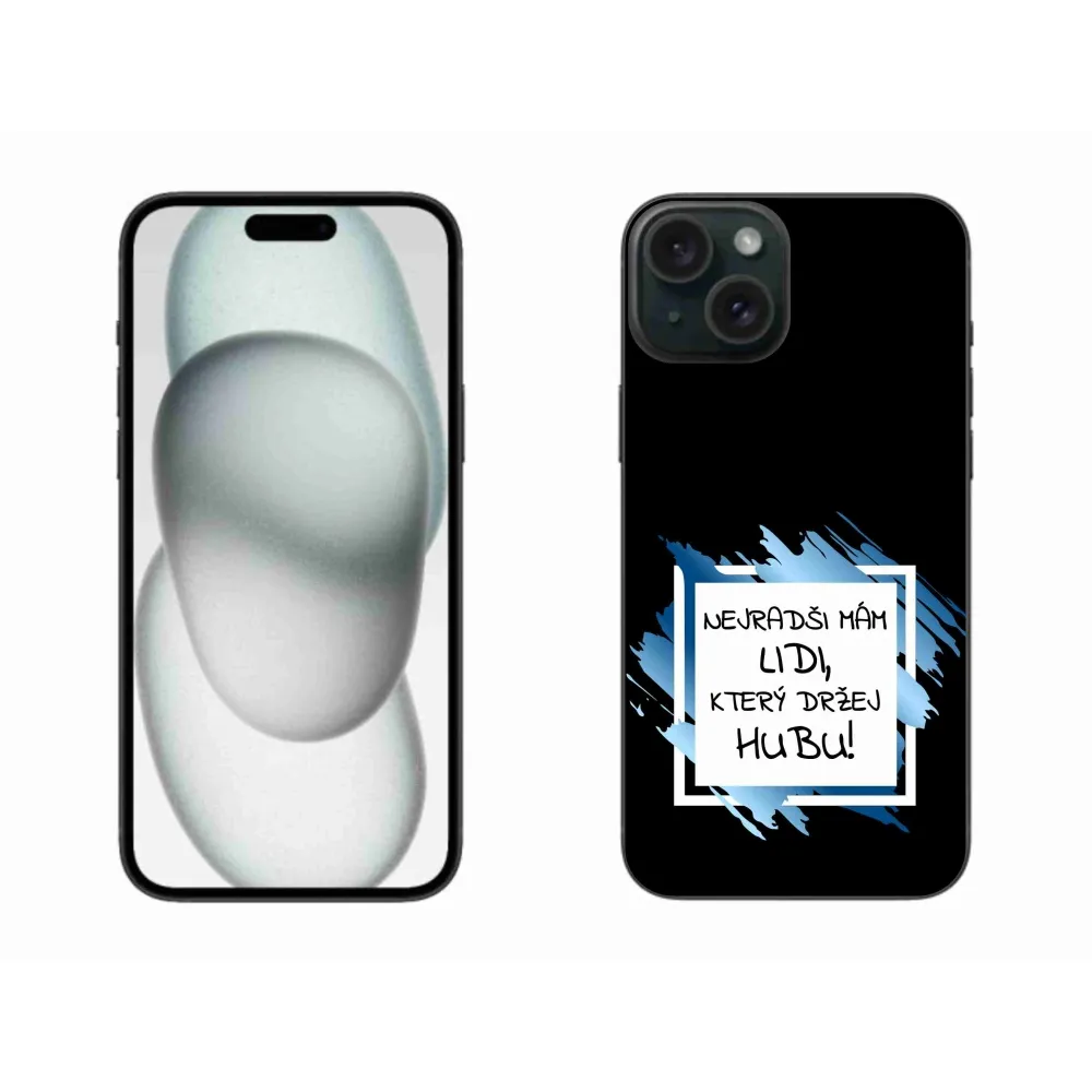 Gél borító mmCase iPhone 15 Plus készülékhez - vicces szöveg 7 fehér és fekete háttérrel