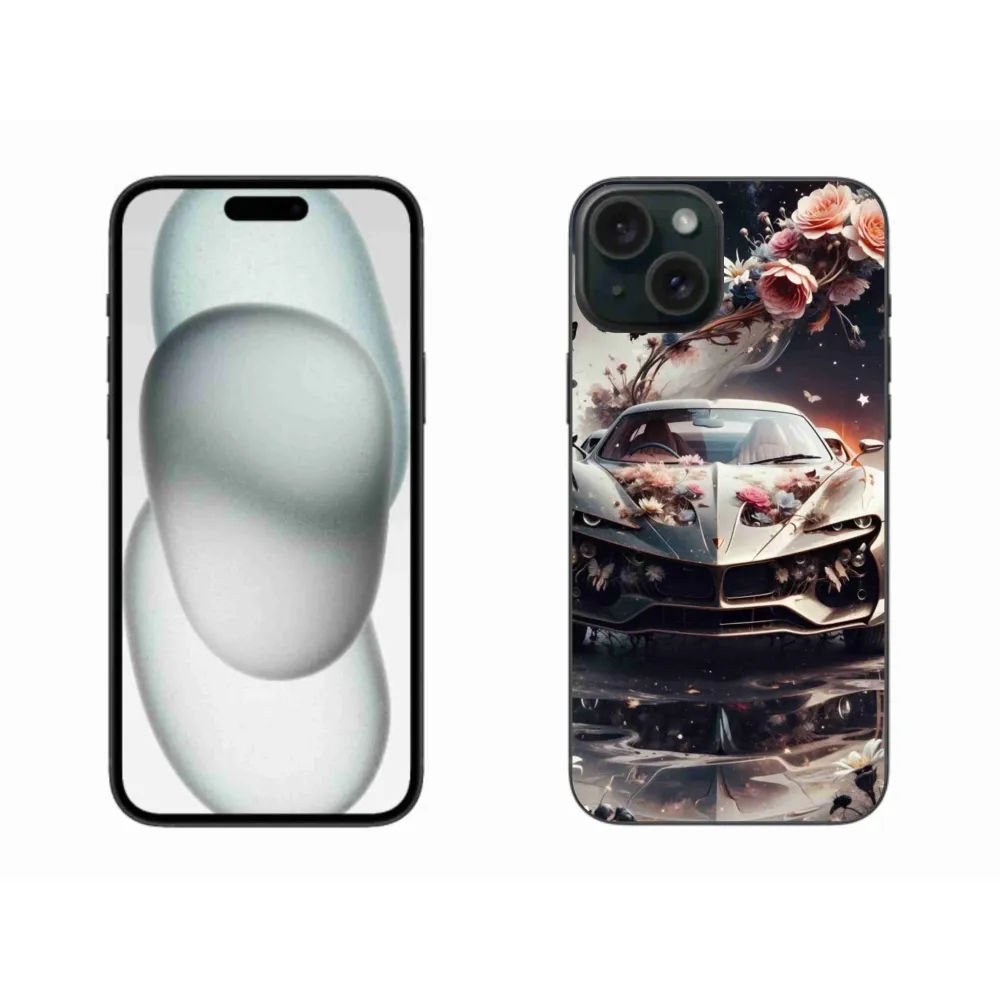 Rugalmas zselés tok mmCase képpel iPhone 15 Plus készülékhez - virágos sportkocsi