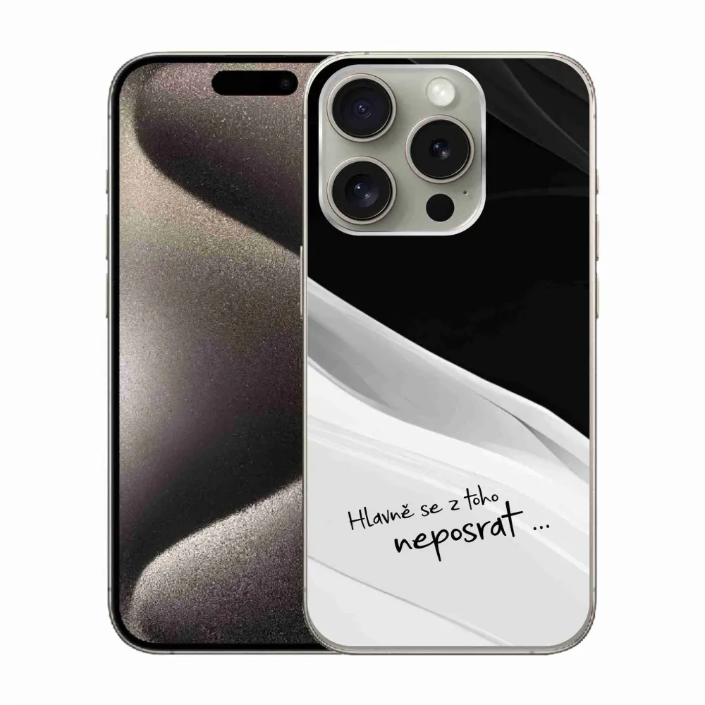 Gél borító mmCase iPhone 15 Pro készülékhez - vicces szöveg 13 fehér és fekete háttérrel