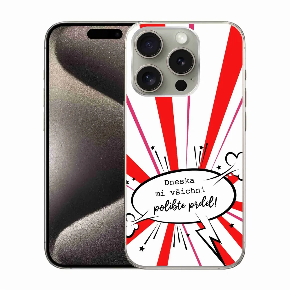 Rugalmas zselés tok mmCase képpel iPhone 15 Pro - vicces szöveg 15 fehér háttérrel
