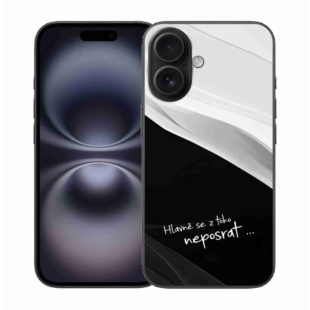 Rugalmas zselés tok mmCase kép iPhone 16 - vicces szöveg 13 fekete-fehér háttérrel