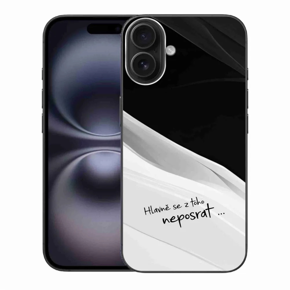 Gél borító mmCase iPhone 16 Plus készülékhez - vicces szöveg 13 fehér és fekete háttérrel