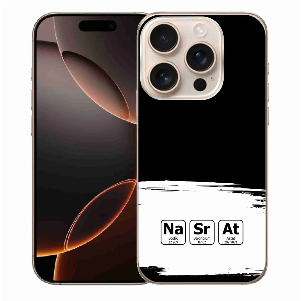 Gél borító mmCase iPhone 16 Pro Max készülékhez - kémiai elemek fehér és fekete háttérrel