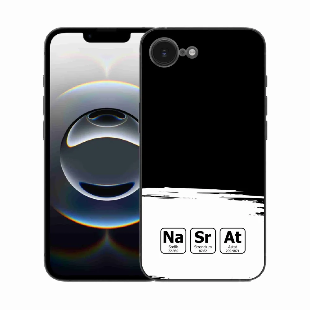 Gél borító mmCase iPhone 16e készülékhez - kémiai elemek fehér és fekete háttérrel