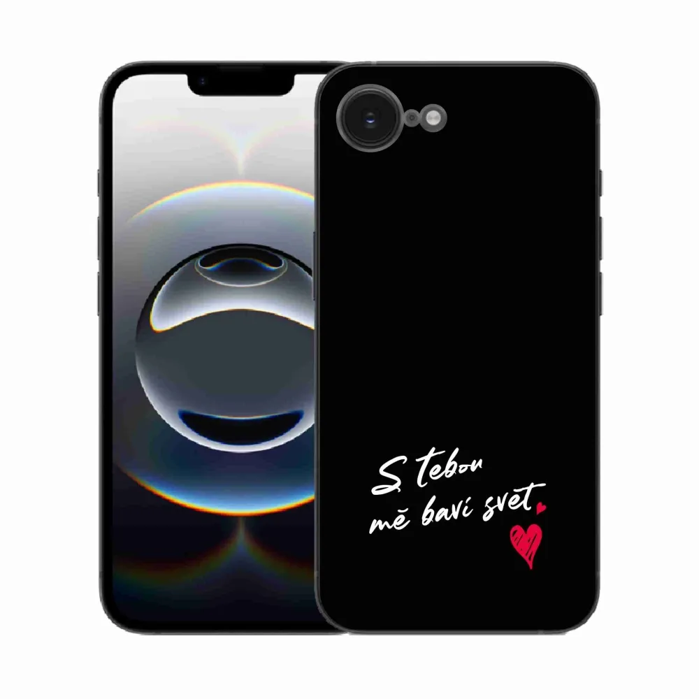 Rugalmas zselés tok mmCase képpel iPhone 16e készülékhez - szerelmes szöveg 1 fekete háttérrel
