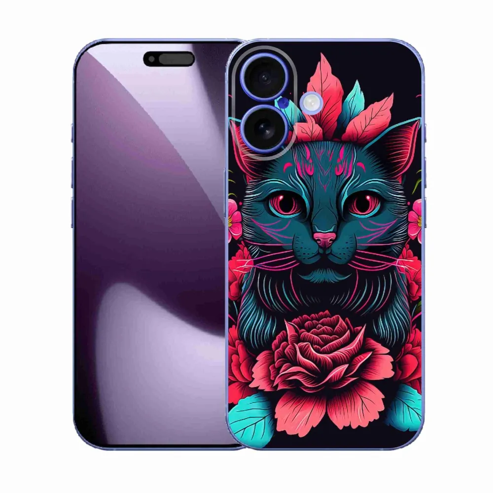 Gél borító mmCase iPhone 17 készülékhez - virágok és macska