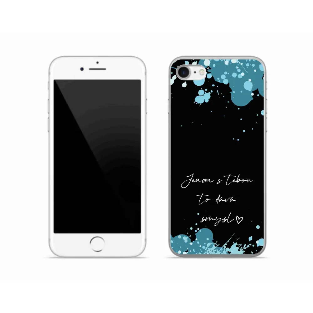 Rugalmas zselés tok mmCase képpel iPhone SE (2020) - szöveg szerelemben fekete háttérrel