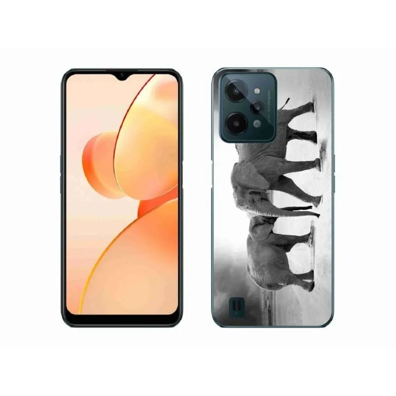 Gél borító mmCase mobilhoz Realme C31 - fekete és fehér elefántok