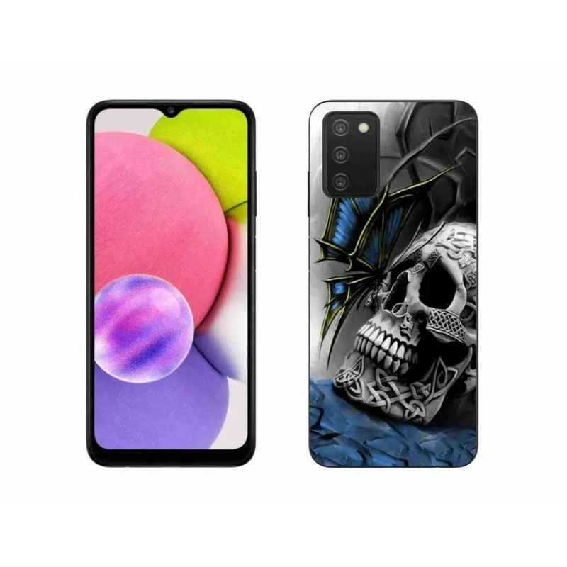 Gél borító mmCase mobiltelefonhoz Samsung Galaxy A03s (166.6 x 75.9 x 9.1) - pillangó és koponya