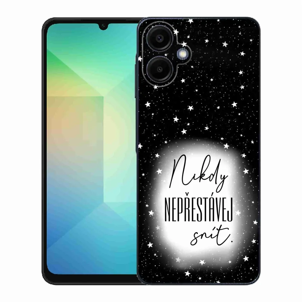 Rugalmas zselés tok mmCase kép Samsung Galaxy A06 4G - idézet 1 fehér és fekete háttérrel