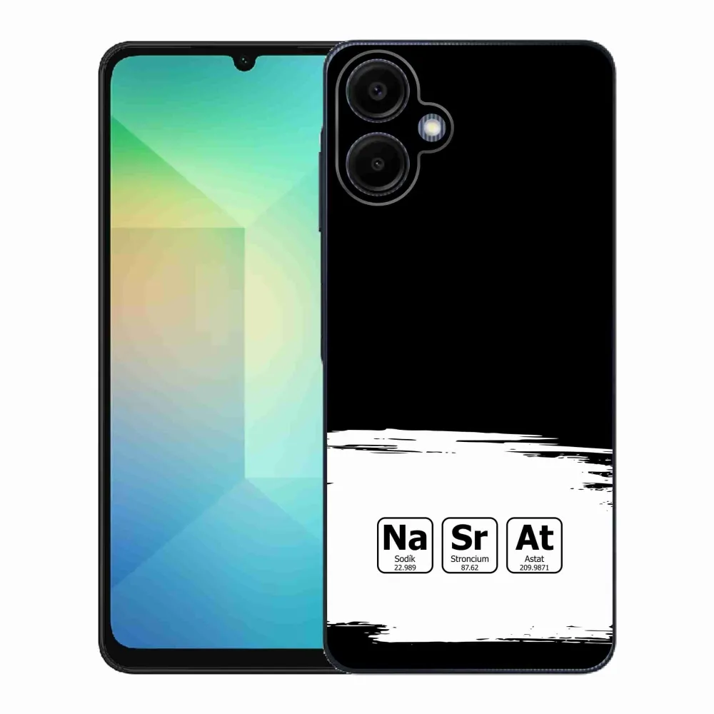 Rugalmas zselés tok mmCase kép Samsung Galaxy A06 4G - kémiai elemek fehér és fekete háttérrel