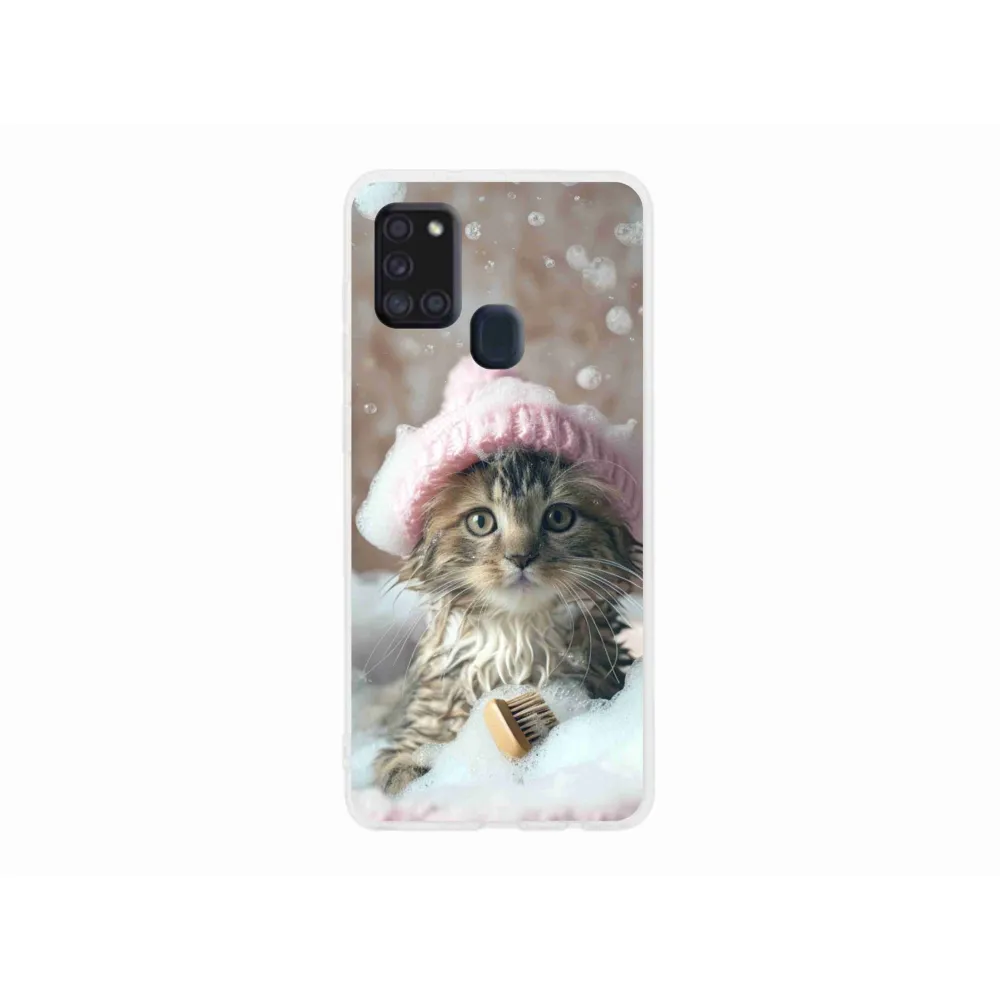 Rugalmas zselés tok mm tok képpel Samsung Galaxy A21s - cica és fürdő